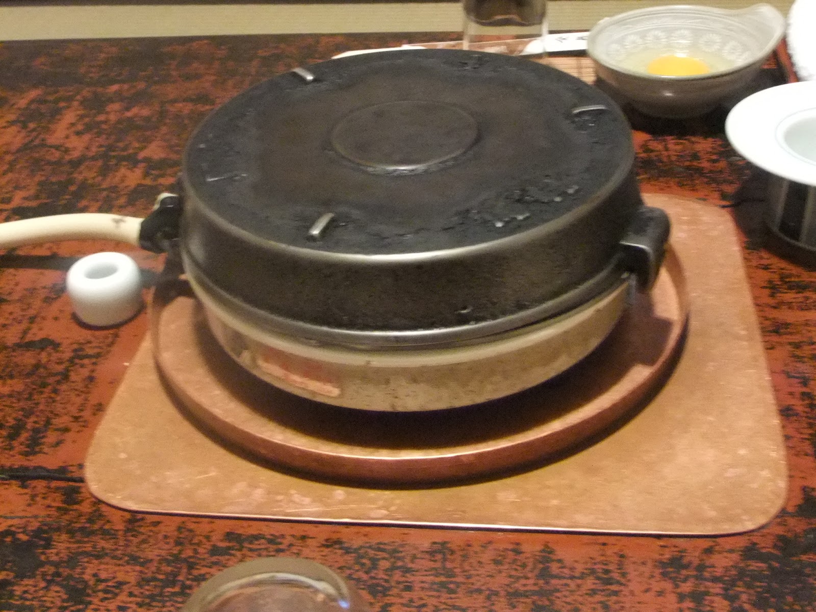 そしてテーブルの上には、すき焼き鍋がセットされていますよ。